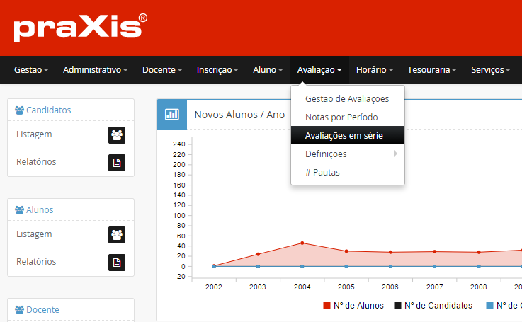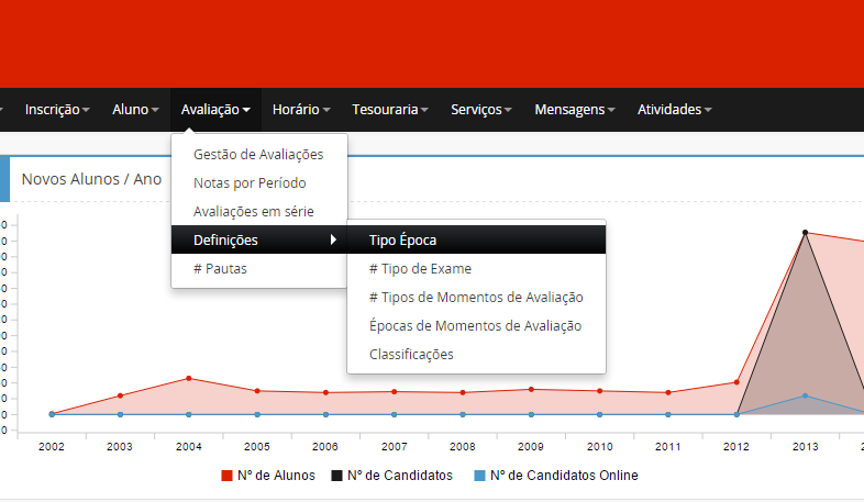 Para adicionar uma nova Época de Momentos de Avaliação, deverá escolher a opção .