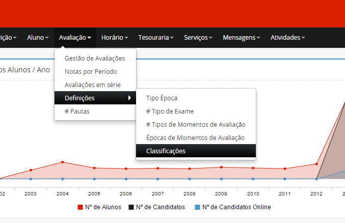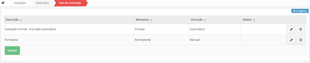 Para eliminar uma Época de Momento de Avaliação existente, deverá ser utilizado a opção disponível no botão .