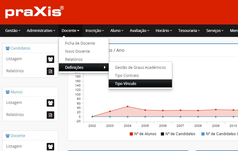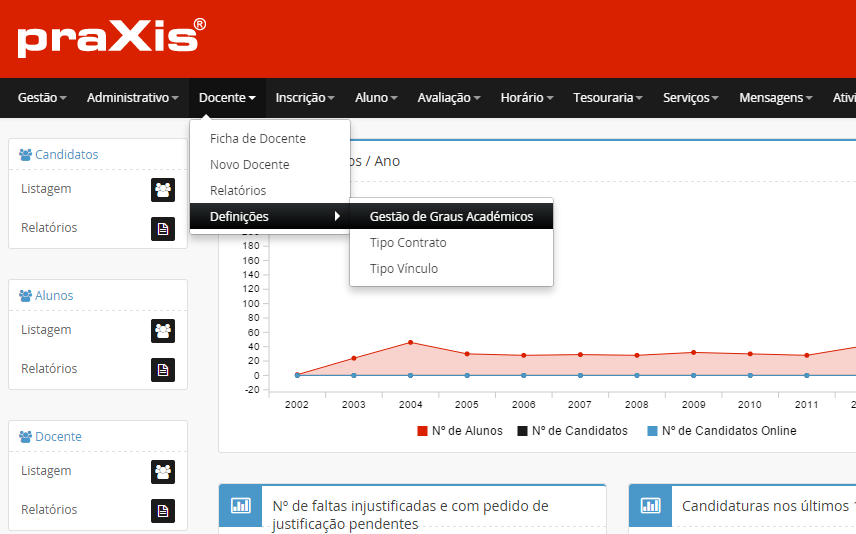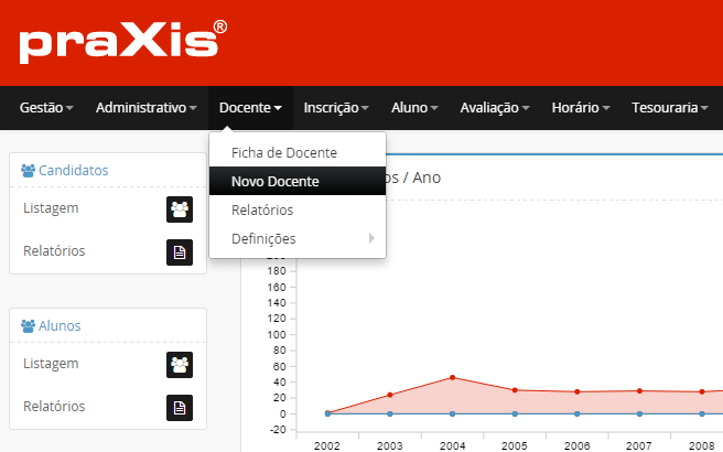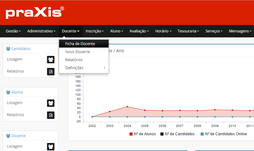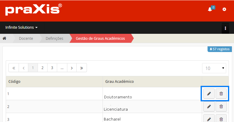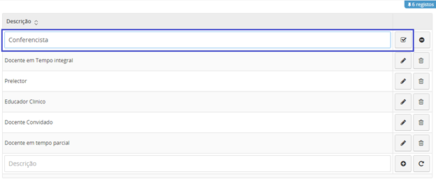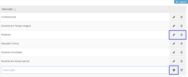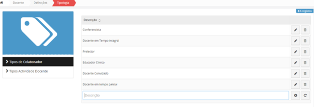 Se pretender editar os dados de um docente, clique no botão .