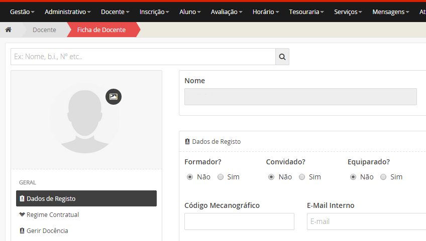 Se apenas pretende consultar os dados de um docente, clique no botão .