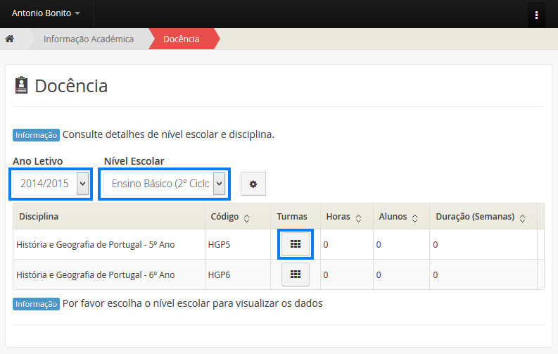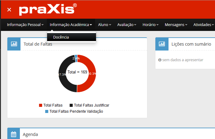Ao aceder à Área de Gestão de Consulta de Atividades de Docência, poderá consultar toda a sua atividade letiva na Instituição.