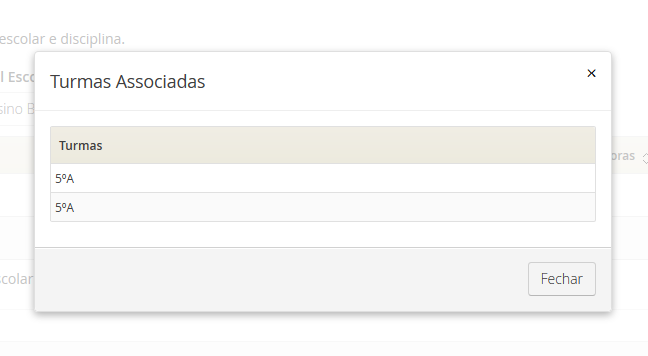 Nota: Para visualizar as turmas em que lecionou na lista de atividades, clique no botão de turma (quatro pontinhos).