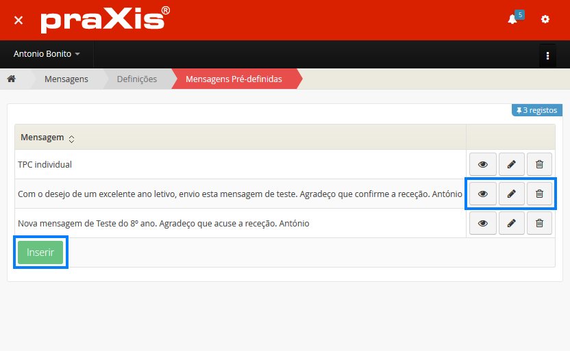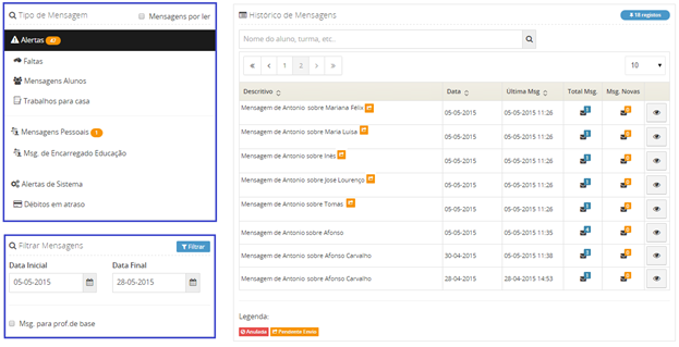 Nota: Se pretender apagar uma mensagem, clique no botão vermelho de eliminação de mesma ou clique no símbolo de lixo na subsecção de conversação. A eliminação de uma mensagem é definitiva e não reversível.