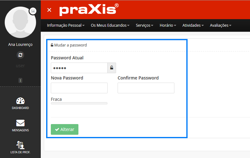 Nota: Em qualquer altura pode sempre voltar para a página inicial clicando no MENU LATERAL > DASHBOARD