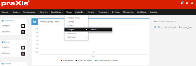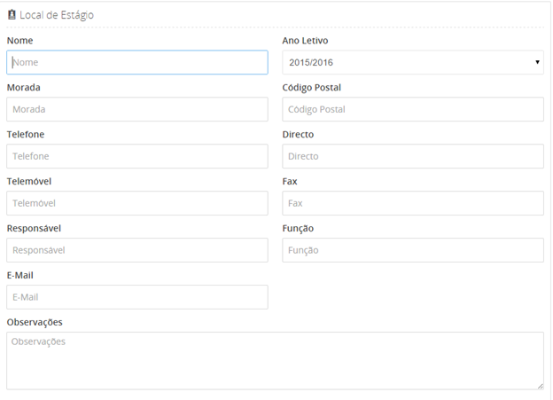 Do lado à direita desta imagem, terá um campo de preenchimento de dados com as várias opções que pode juntar ao Local de Estágio que pretende criar. Veja a imagem do ponto seguinte.