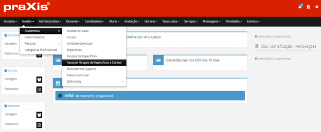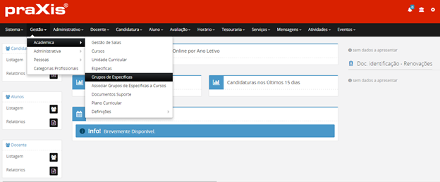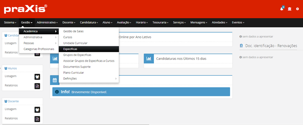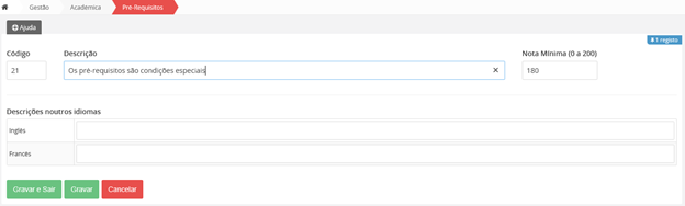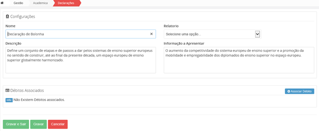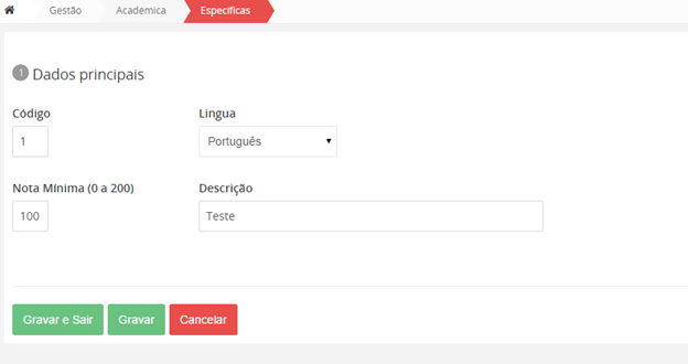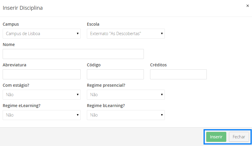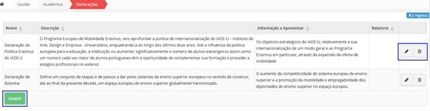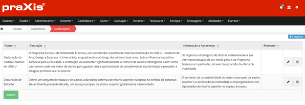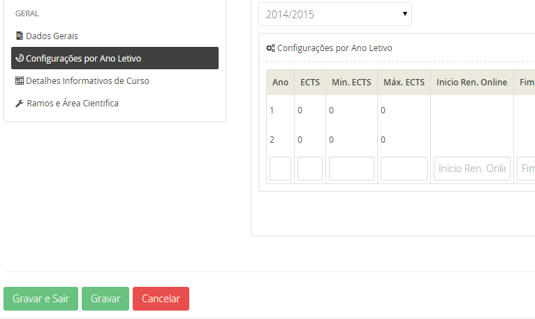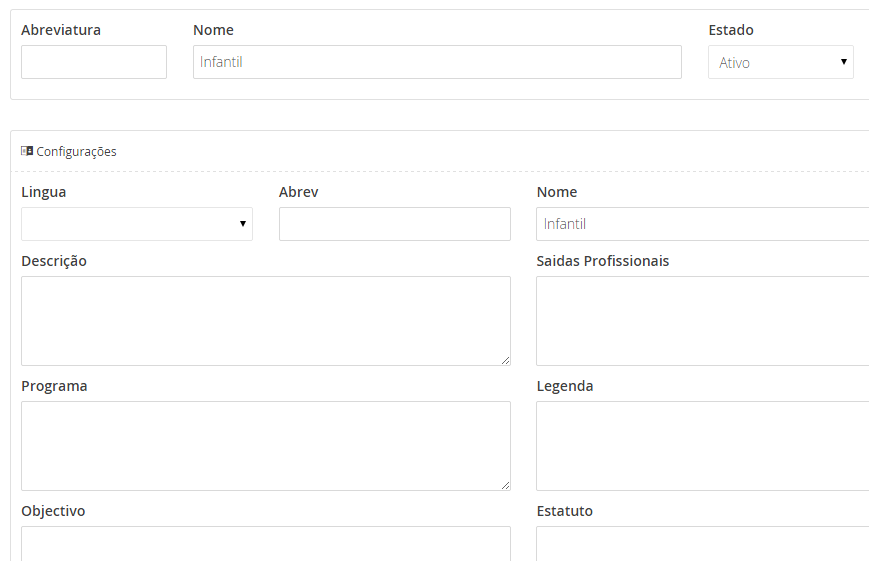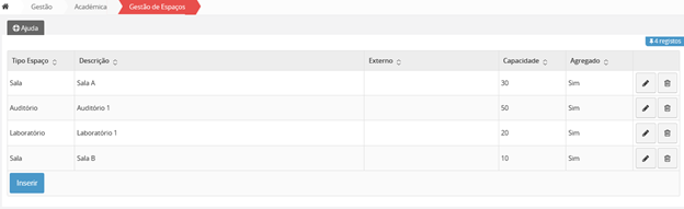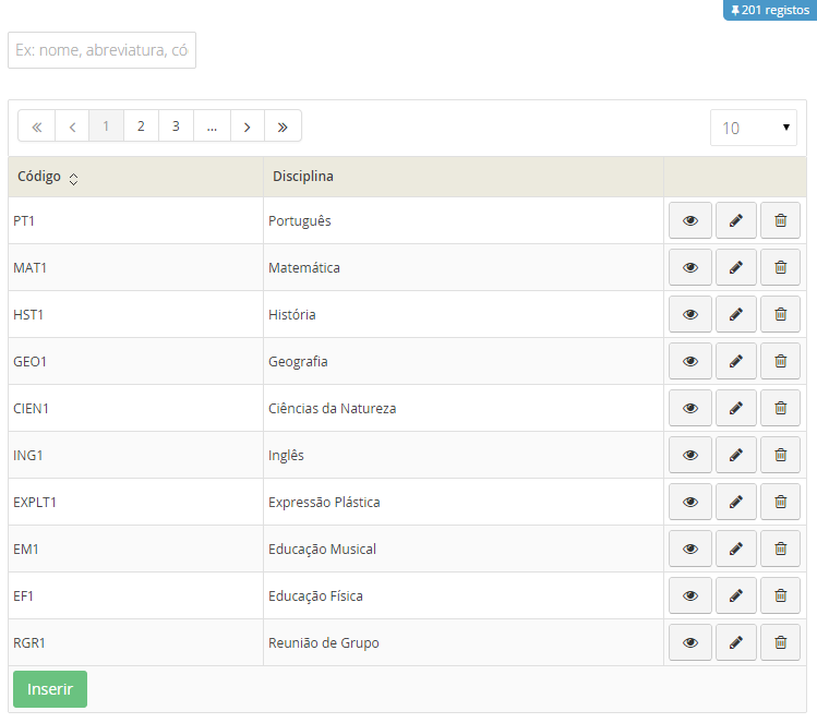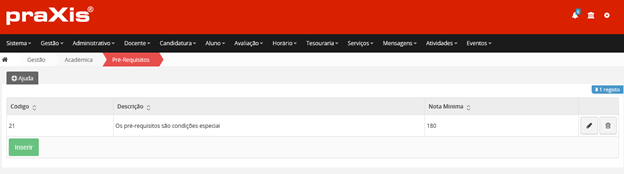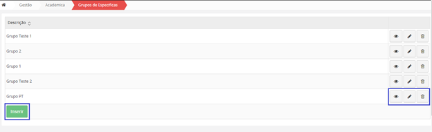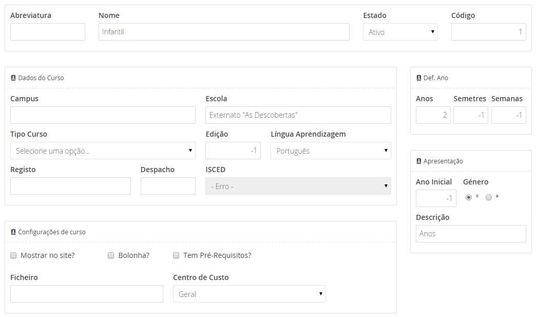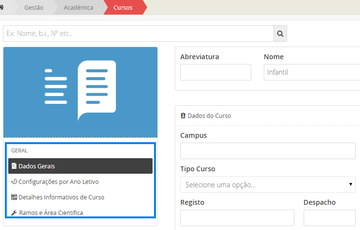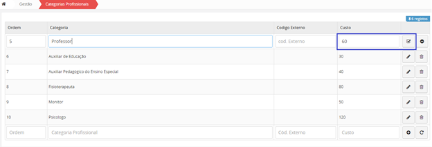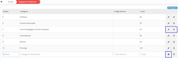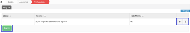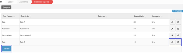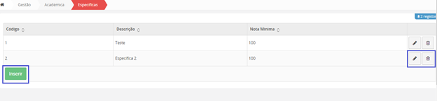 Se pretender editar os dados de um curso, clique no botão de edição .