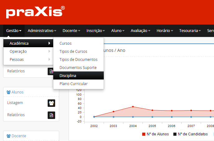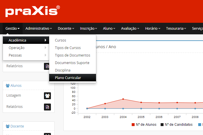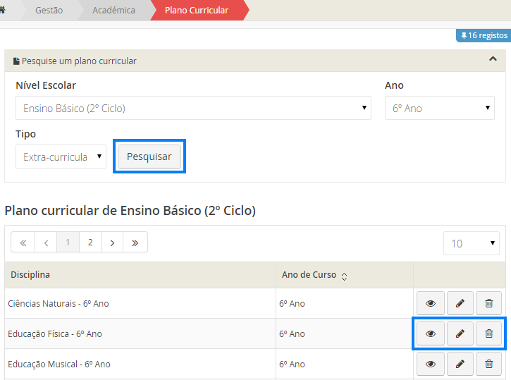 Para eliminar definitivamente um plano curricular da aplicação, clique no botão de eliminar .