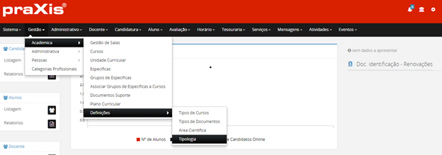 Se pretender editar os dados de um tipo de curso, clique no botão de edição .