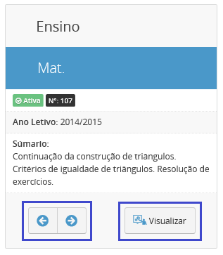Poderá navegar entre as várias entradas, utilizando os botões disponibilizados para isso. Ver a imagem em baixo (Fig.1). Se pretender consultar o sumário, clique no botão “Visualizar” em que lhe é apresentado uma janela (pop up) com a respetiva descrição (Fig.2).