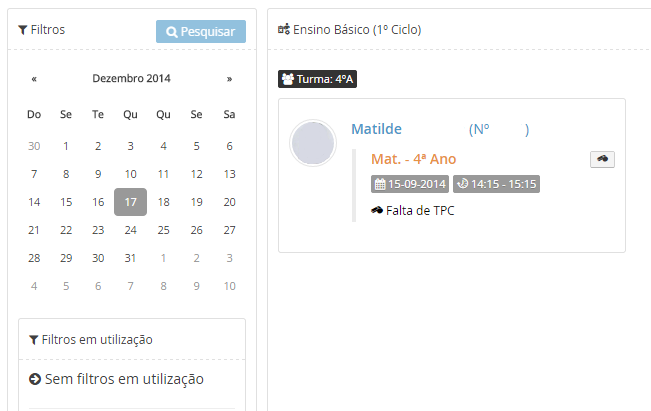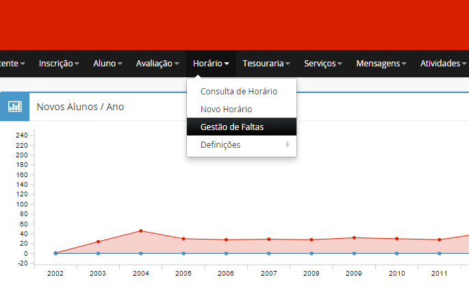 Note que nesta interface de gestão de faltas, só poderá marcar as faltas.