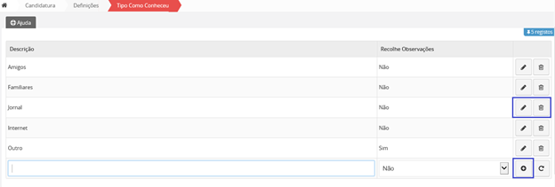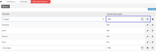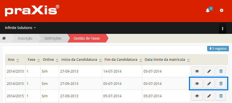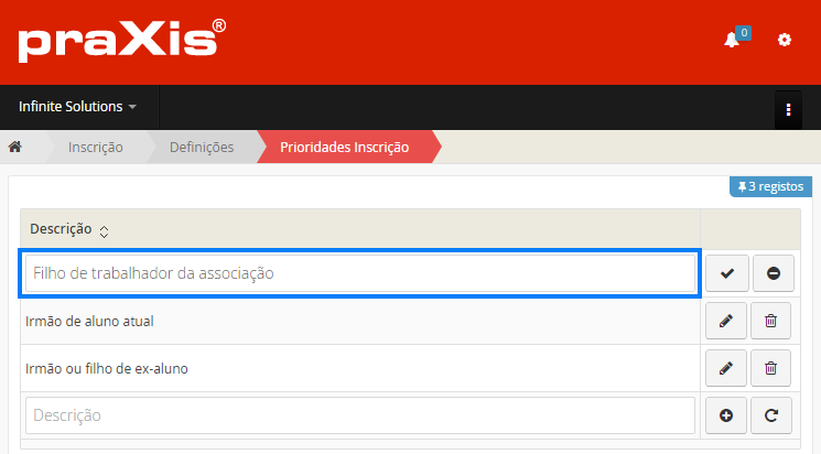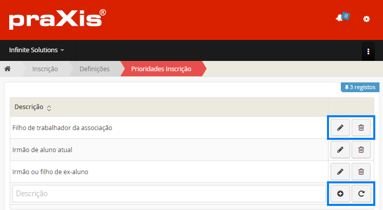 Todos os tipos de prioridade de inscrição são editáveis. Se pretender alterar os dados de um determinado tipo de prioridade de inscrição, basta clicar no botão .