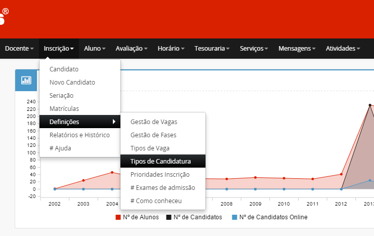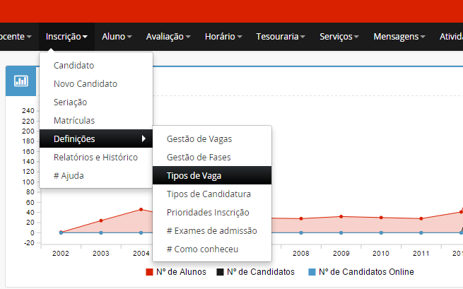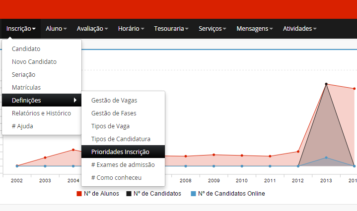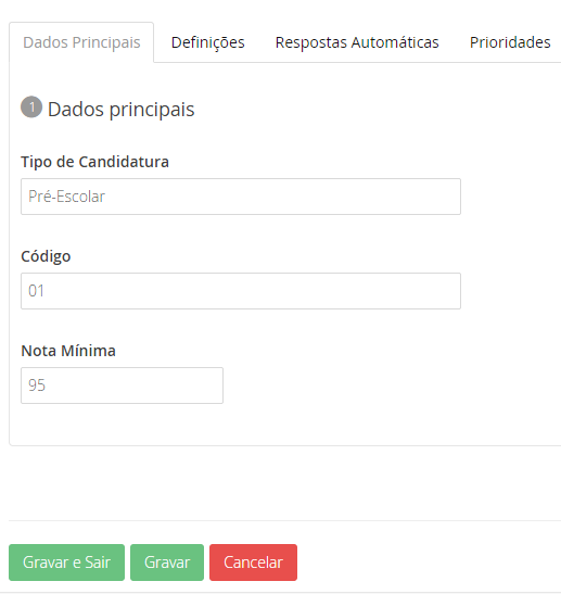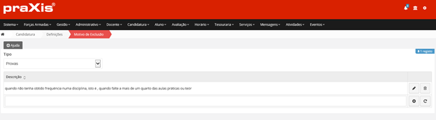 Nesta interface poderá consultar a lista de todos os tipos de Prioridade de Inscrição.