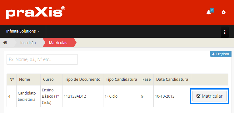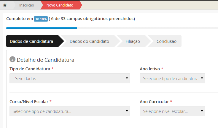 Para eliminar um candidato existente, deverá ser utilizado a opção disponível no botão .