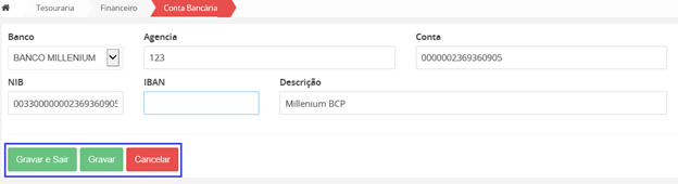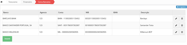 Quando edita ou insere uma Unidade financeira, vai-lhe aparecer um símbolo no extremo de cada item. Para guardar as alterações, deverá clicar nesse botão.