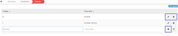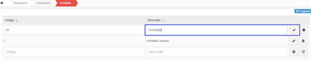 Para editar ou alterar uma Unidade financeira, deverá clicar no botão editar