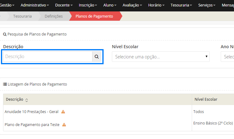 Ao aceder à secção da Gestão de débitos, encontrará uma lista com todas as famílias de débito.