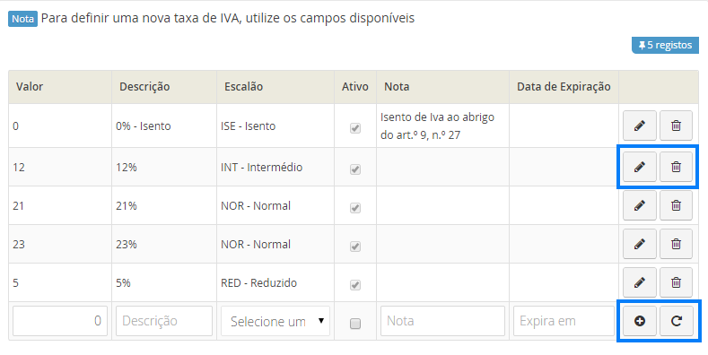 Tenha em atenção que ao eliminar um registo, essa eliminação é permanente e sem hipotése de recuperação.